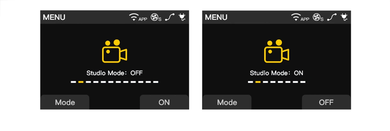 Štúdiový režim pre rýchle zapnutie a uchovanie nastavení štúdiového osvetleniaŠtúdiový režim eliminuje potrebu stláčať tlačidlo napájania na ovládacej skrinke na zapnutie a vypnutie svetiel. Pripojte CL600R k obvodu a aktivujte Štúdiový režim a zariadenie sa zapne/vypne, keď je napájanie zapnuté/vypnuté. Taktiež si zachová predchádzajúce nastavenia, čím eliminuje potrebu neustálej konfigurácie.